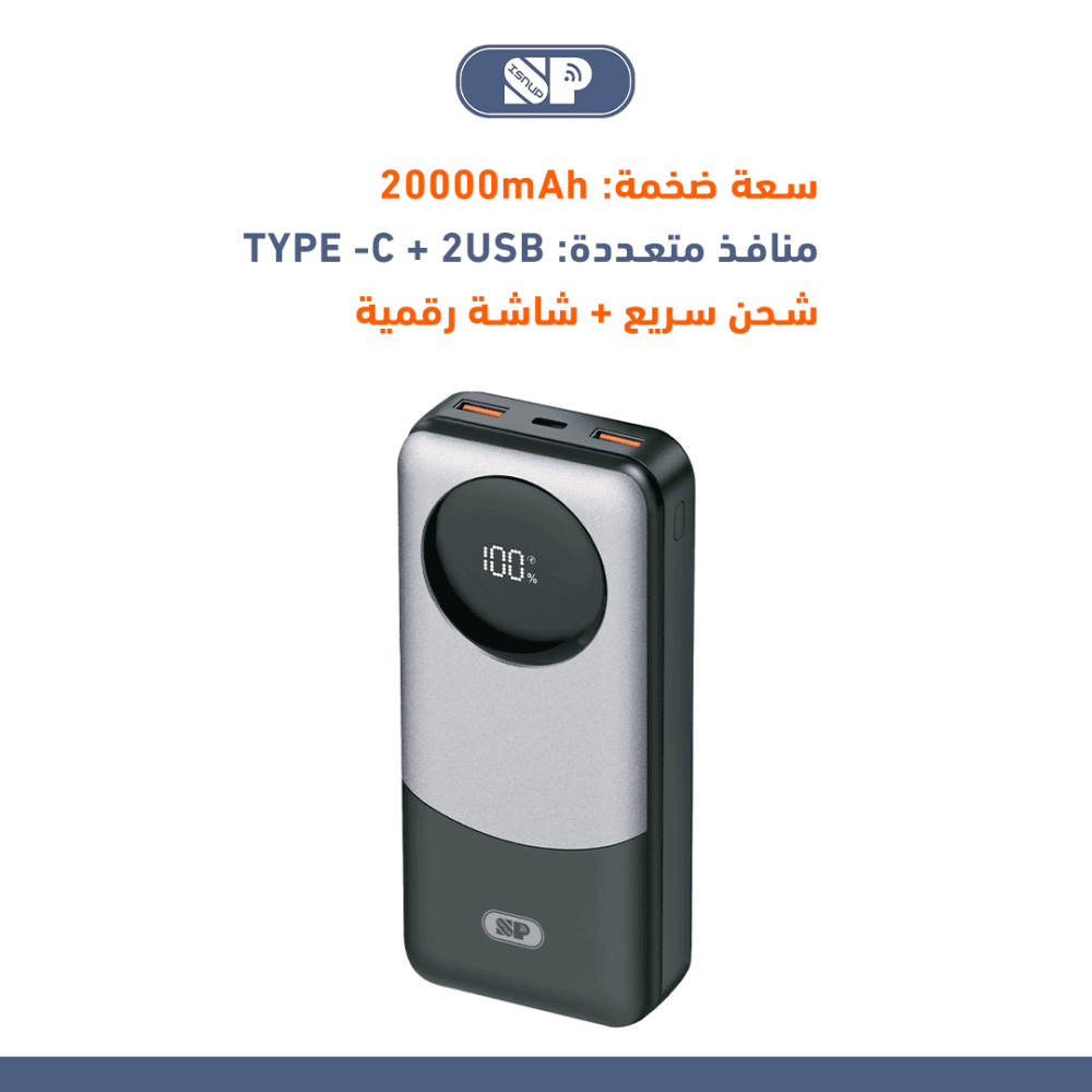 - سعة ضخمة: 20000mAh، مما يوفر شحنًا طويل الأمد لأجهزتك.