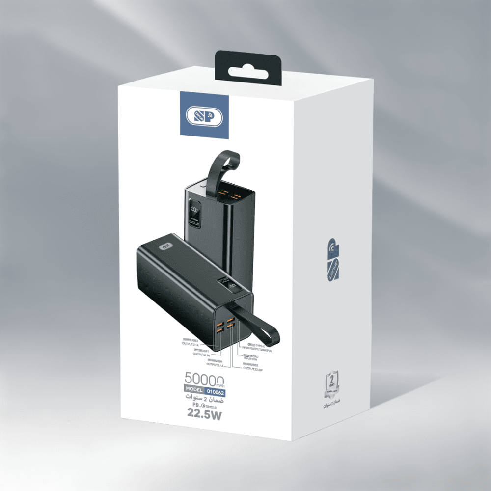شاحن متنقل 50000 مع وصلة PD بقوة 22.5 واط ومنافذ USB مزدوجة، مفيدًا جدًا بالنسبة للأشخاص الذين يستخدمون الأجهزة الإلكترونية أثناء التنقل. فهو يوفر طاقة كافية لشحن الهواتف الذكية والحواسيب اللوحية عدة مرات. يأتي شاحن باور بانك 50000 بتصميم صغير الحجم وخفيف الوزن، مما يجعله مريحًا لحمله في الجيوب والحقائب. بالإضافة إلى ذلك، فإن هذا الباور بانك يتميز بالشحن السريع، وبالتالي يوفر سرعة شحن فائقة لأجهزة الآيفون والأندرويد.