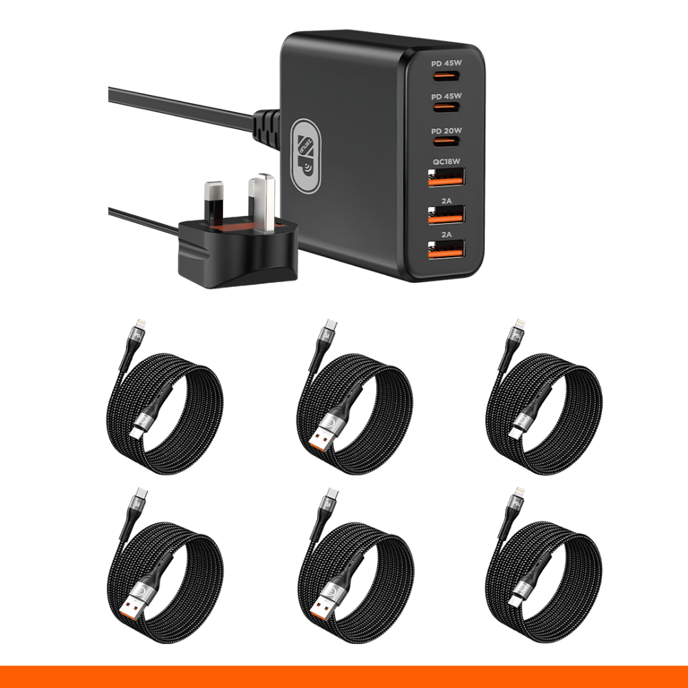 شاحن متعدد المنافذ يقدم قدرة شحن قوية تكفي لجميع أجهزتك في وقت واحد.
