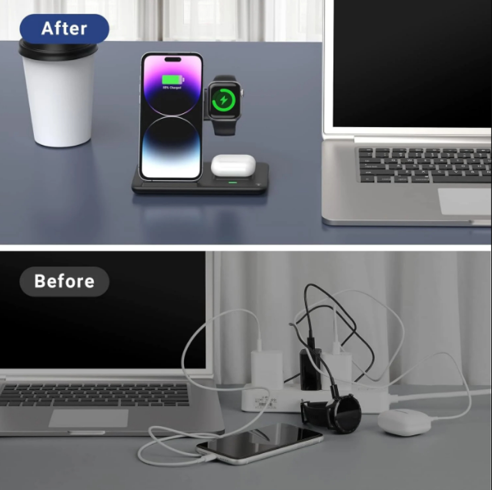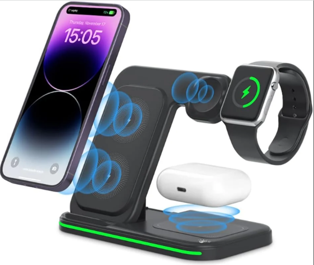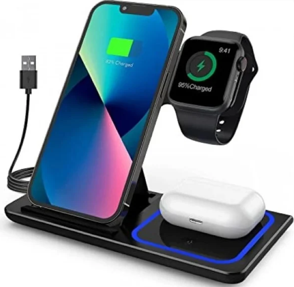3. ⚡ منصة شحن لاسلكية 3 في 1 – إضاءة ذكية ومتانة عالية
