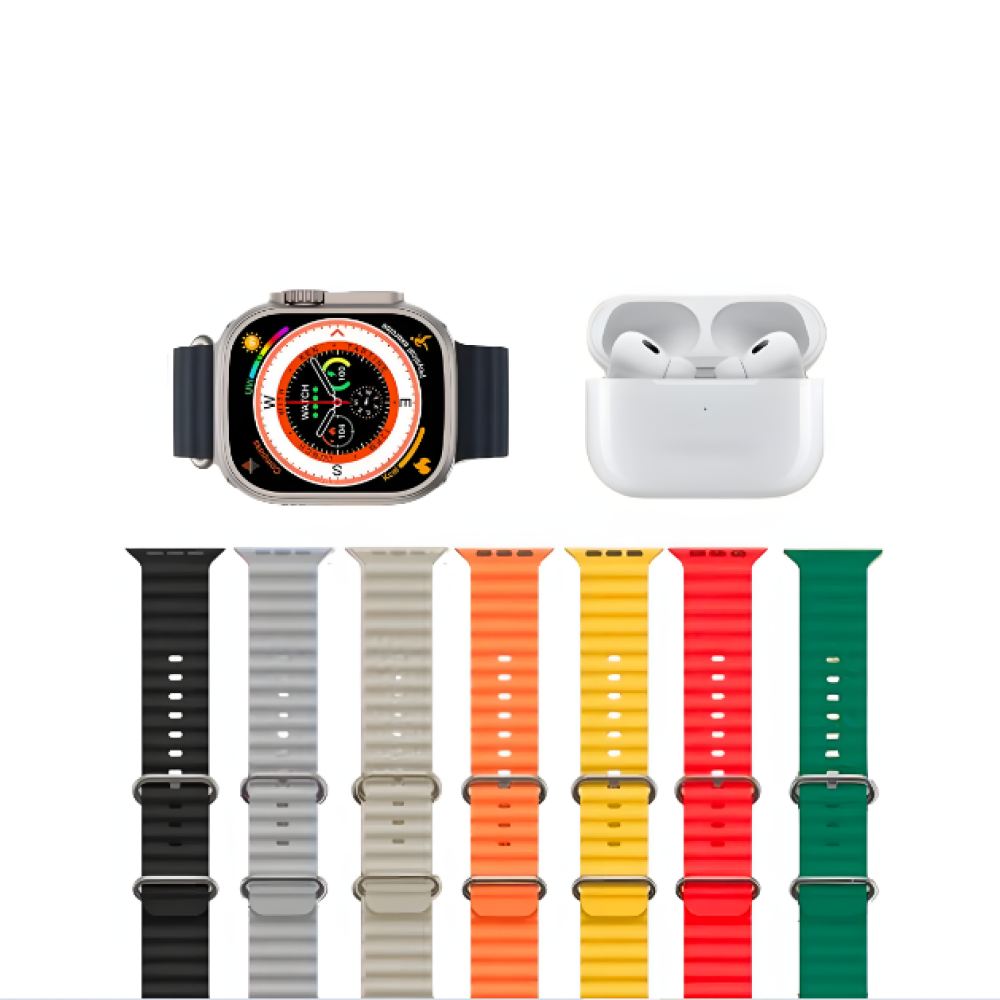 1. ⌚ ساعة Ultra ذكية + 7 أساور متنوعة