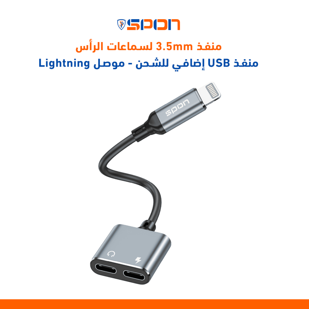 مميزات تحويلة مخرجين سماعة وشاحن للايفون ماركة SPON :