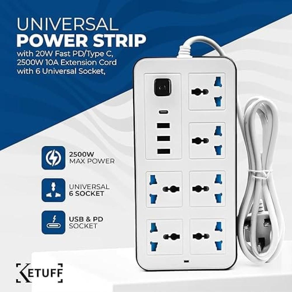 - 6 مداخل كهربائية: مثالية لتوصيل عدة أجهزة في نفس الوقت، مما يوفر لك الراحة والسهولة.