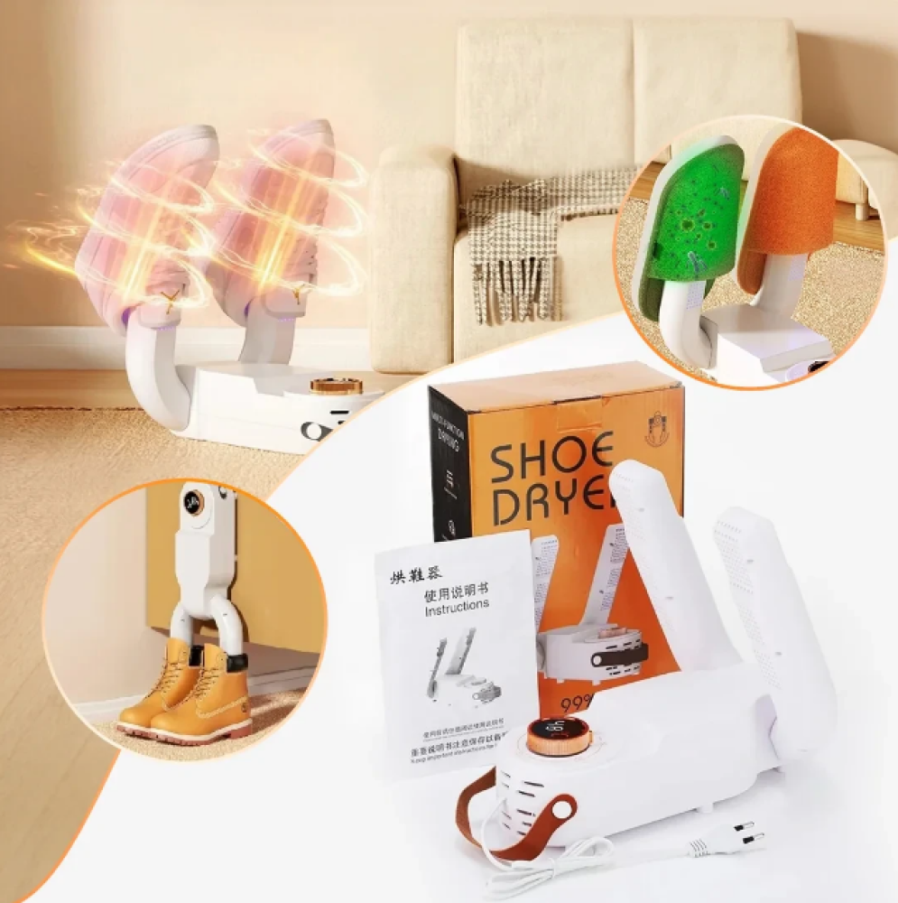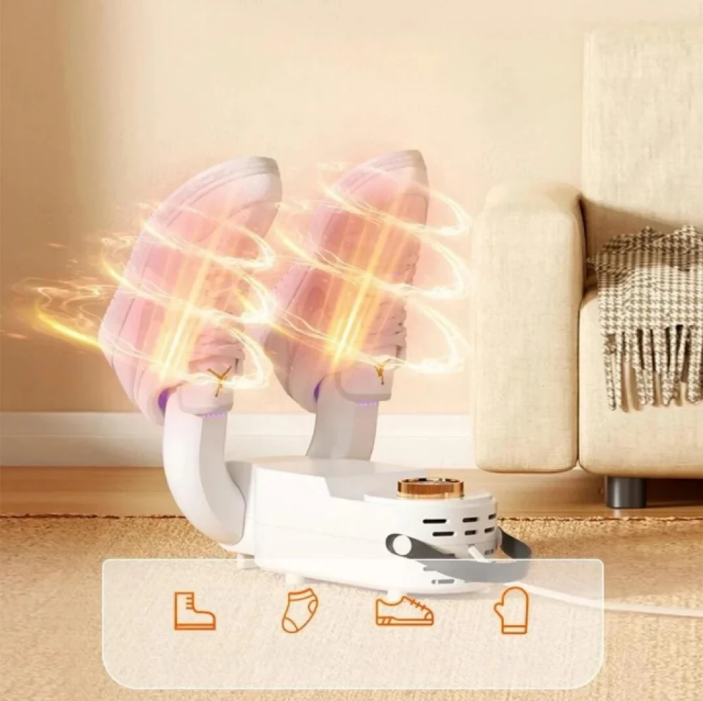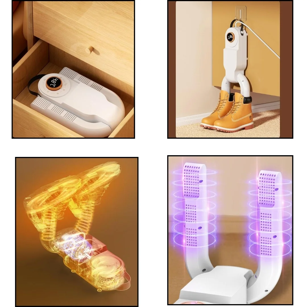 هذا المجفف قابل للطي وهو الحل المثالي للتخلص من الرطوبة والروائح الكريهة في أحذيتك بسرعة وفعالية، حيث يوفر نظام تهوية 360 درجة وتجفيفاً فعالاً وتعقيماً بالأشعة الفوق بنفسجية لجميع أنواع الأحذية.