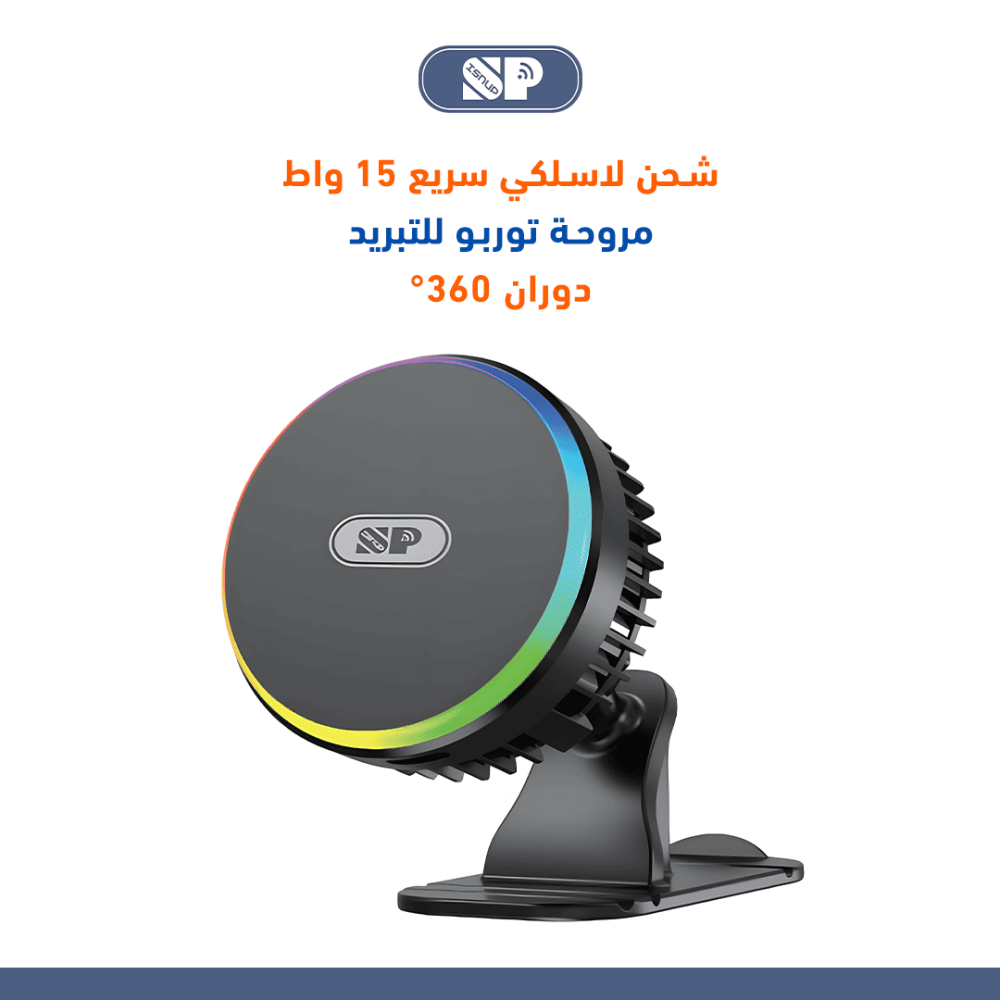 - مروحة توربو لتبديد الحرارة بسرعة: نظام تبريد مبتكر للحفاظ على درجة حرارة الجهاز المنخفضة أثناء الشحن. يمكن توصيله بكل سهولة باستخدام ولاعة السيارة أو أي مصدر طاقة، عن طريق كابل اليو إس بي المرفق حيث يضمن توفير طاقة مستقرة للشحن اللاسلكي الفعال أثناء التنقل.