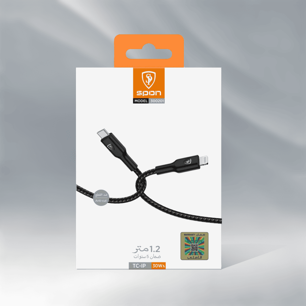 كيبل شحن ايفون قوي ويتميز بخاصية الشحن السريع كما انه آمن على هاتفك الآيفون ويمكنك ايضاً شحن هاتف تايب سي من خلاله, احصل عليه الآن.