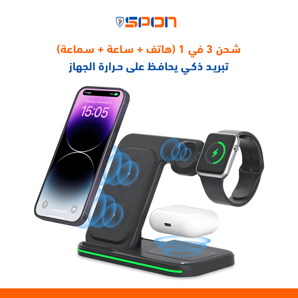 مميزات منصة شحن 3 في 1 اللاسلكية بقوة 15 واط :