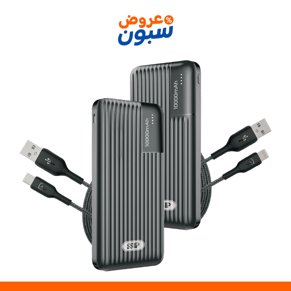 احصل على 2 باور بانك بسعة 10000mAh +اتنين كيبل قماش ضد القطع، تعيش معك وتتحمل الاستخدام اليومي بدون تعب.